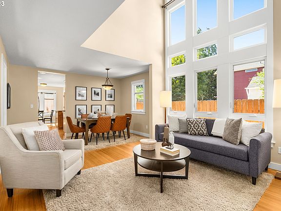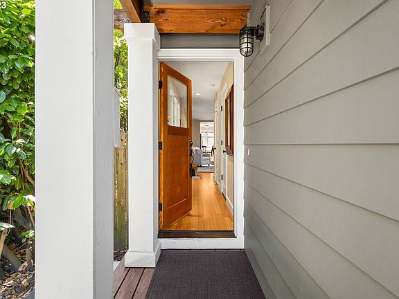 Extraordinary light and bright Kenton Modern designed by award winning architect Roxana Vargas Greenan. Known for unique design and incorporating sustainable materials this architect also included efficient systems and walls of windows bringing in year round natural light. Earth Advantage Certified and a home energy score of 8, it is the home for today's sensibilities. Airy 20 foot living room ceilings and open-concept living lead to a spacious kitchen with alder cabinets, lots of counter space and nook opens to the entertainer's courtyard primed for evenings with friends and family. Upstairs are the primary bedroom with bath, walk-in closet and Juliette balcony plus two more bedrooms and 2nd full additional bath. Ready for a new owner with refinished bamboo floors on the main, fresh flooring in the bedrooms, interior paint and exterior paint in 2020. Great backyard with patio, covered area for grilling and sunny side area for veggies next year. Practical floorplan with 1/2 bath on the main, attached garage, covered front porch and driveway for off-street parking. Neighborhood Kenton Village shops, cafes, restaurants right down the street and easy access to Max and I-5. Walk Score: 84 Bike Score: 98. [Home Energy Score = 8. HES Report at https://rpt.greenbuildingregistry.com/hes/OR10120170]