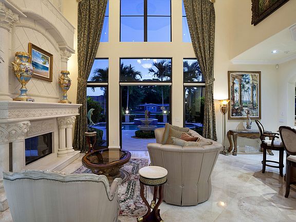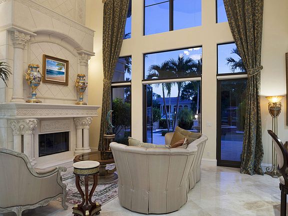 Beautiful finishes and every amenity desired distinguish this luxurious custom-built waterfront estate featuring yacht dockage with unobstructed ocean access. Comfortably elegant interiors feature Saturnia marble floors, Venetian plaster, furniture-grade cabinetry, and detailed ceiling treatments. Impressive 2-story living room with fireplace and wet bar; library/office; wine vault. Grand master suite with loggia. Sprawling night-lit garden patio with resort-style pool/spa and summer kitchen.