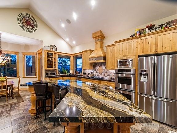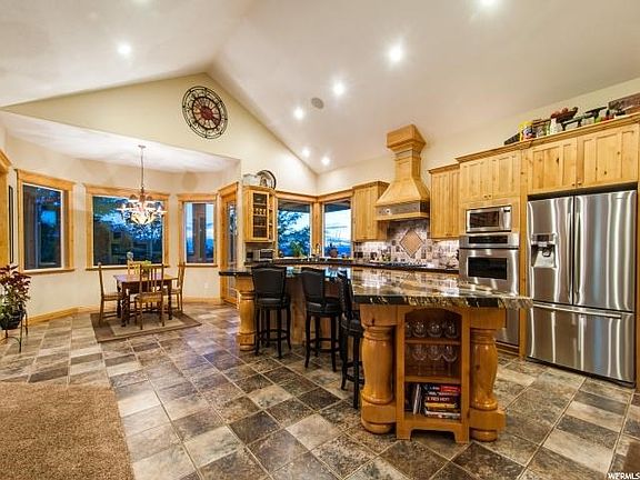 Entertainers Dream! Large open spaces that really lend to large gatherings both inside and out on the deck. Beautiful curb appeal, private yard, spectacular views, quiet and peaceful setting, meticulously updated and kept, large cooks kitchen, gorgeous granite counter tops, quartz counter tops, main floor living, stainless steel appliances, built-ins, huge pantry, weber water, greenhouse w/separate controls, home theater, sauna, basketball court, Nuvo sound system.