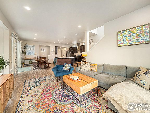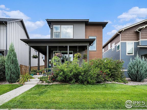 NO METRO in this Modern living at Mosaic, just minutes from downtown Fort Collins! This desirable Edison floor plan offers 3 beds, 3 baths, and is perfectly located near shopping, dining and entertainment! This home offers a blend of style and functionality starting with a wrap around porch and beautifully landscaped entry with gorgeous rose bushes. This bright open floor plan with luxury vinyl plank flooring, abundant natural light, and a spacious kitchen featuring a large island and quartz countertops. Enjoy seamless indoor/outdoor living with double sliding glass doors opening from the dining area to a private patio and yard-ideal for entertaining. The primary suite boasts a 3/4 bath with walk in shower, dual sinks and a generous walk in closet. There are two additional bedrooms upstairs, a full bath and convenient laundry. All baths have updated quartz countertops, new mirrors and light fixtures. The oversized two-car garage offers plenty of room for vehicles, storage or projects. The full unfinished basement provides endless possibilities for future expansion. Mosaic residents enjoy 2 community pools, open green spaces and this home is one block to the new planned community park!