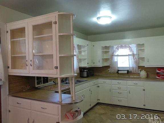 Kitchen with small built in hutch, breakfast area, Large living room, Separate Dining Room, Added Family Room in apx 4 years ago. Carpets only 4 years old. Icard Township Water. Pine Paneling in DR. Family Room has Monitor Heat System and will remain. Screened in Porch added. Single Attached Carport. Basement has some older kitchen cabinet with running water, great storage area with shelves, Would make a great canning kitchen. Basement also has a block shower, and toilet. Detached garage with side workshop. Circular drive. Home being sold "as is". Elderly seller is in nursing home and doesn't have the money to make repairs, but it is in good livable condition. $15,000 Below Tax Value. Central Air. Oil Furnace.
