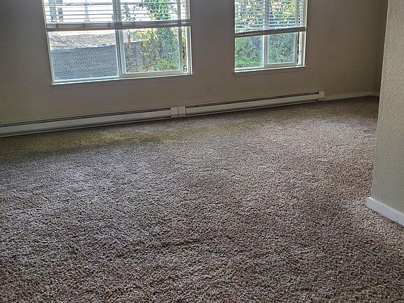 1 year old carpet , spacious living room with open kitchen floor plan. laundry facility on - site ( coin operated ) bathroom is a decent size. Upstairs unit. One guaranteed parking spot. Owner pays for water, sewer and garbage. No pets & No smoking.. $ 50.00 application fee. We do ask for last months rent. Application guide lines = 1 year of employment / Good credit / Good rental history / No criminal back ground.