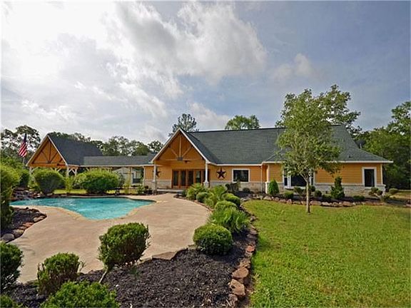 Paradise in the country!Lovely custom home on 17 acres,too many features to list, must see to appreciate.8x10 Pantry,4x12 granite island,refrigerator stays.Great 16x23 loft/office. 25x30 party barn w/built-ins,25x25 outdoor kitchen w/DW,micro,stovetop,grill,stainless cabinets & drawers,pool w/waterfall,separate hot tub,outdoor bath,22x24 garage/barn,30x40 fenced garden area,property fenced and cross fenced,Ag.Exemept(cows can stay) & huge oak trees.