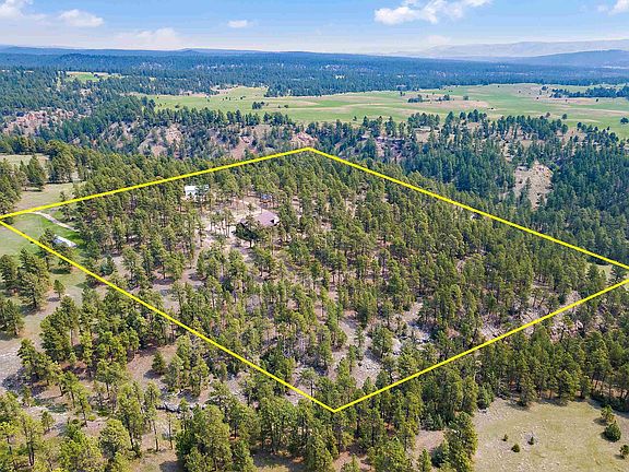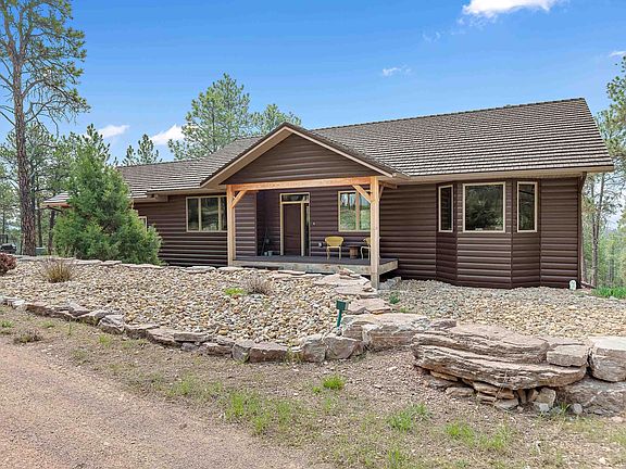 Welcome to this picturesque property nestled amidst the natural beauty of Hot Springs, South Dakota. Situated in the serene surroundings of pine trees, this four-bedroom, three-bathroom custom home with 10 acres and includes a large heated detached shop with a separate living space. As you approach the property, you'll be greeted by the southern hills ambiance and the charm of the forested landscape with a private drive that leads to the home where the views from the covered deck will bring you some peace and joy as you take in the wildlife and sounds of nature. Upon entering the residence, you'll discover a spacious and thoughtfully designed floor plan that combines functionality with comfort. The main living area features a unique concept, allowing for seamless interaction between the kitchen, dining, and living spaces. Natural light filters through large windows, inviting the outdoors