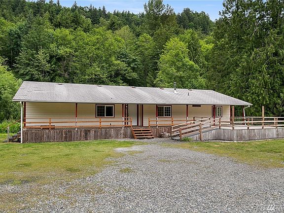 HOME SWEET HOME!4 bed 2 bath 1600 sf 1 level living on just over 3 acres - absolutely GORGEOUS SETTING w/TOTAL PRIVACY - just minutes from downtown, the golf course, Mud Mountain Dam Park & Mt Peak hiking trails!Only 30 mins to Crystal Mountain! Great opportunity to add your own finishing touches! This beautiful property also features a 50 x 30 Barn, storage, shop, garden space & outdoor fire pit. Master + master bath+3 addl beds+2nd full bath, living room, dining room, family room w/wood stove.