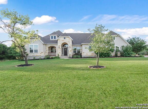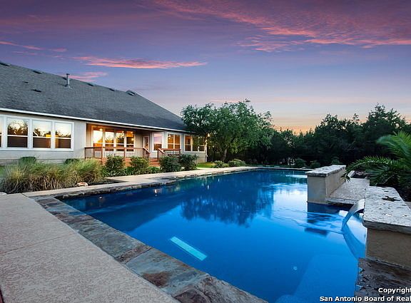 Texas Hill Country custom living at its finest!. Welcome to 27322 Park Loop Rd, located in the gorgeous New Braunfels Hill Country community of Rockwall Ranch. This stunning single story custom property sits on 1.34 acres of a meticulously manicured lot with an expansive backyard retreat and in ground salt water pool. This beautiful home boasts gleaming hardwood flooring, an open floor plan, large gourmet kitchen with stainless steel appliances, granite counter tops and more. 1.805 tax rate!