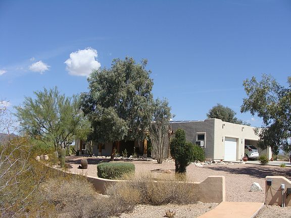 Pristine custom Santa Fe style home with the most amazing AZ desert views located just minutes from WICKENBURG! This beautiful home features 3 very spacious bedrooms, 2.5 bathrooms, a large Great room w/ propane FP, built-in entertainment center, den or home office. The kitchen is a cook's delight w/ custom Alder Santa Fe style cabinets, deep pot drawers, all granite tops, movable island, small appliance storage, pantry, compactor, and breakfast bar. For the outdoor lover there is 3.22 acres of gorgeous desert, perfect to trail ride by hor se or ATV. Star gaze from the nicely appointed lookout area complete w/ built-in BBQ, FP, seating areas, & walking path. Additional features are RV carport, your own oil changing station, separate storage bldg., 100% well, peace & privacy too!