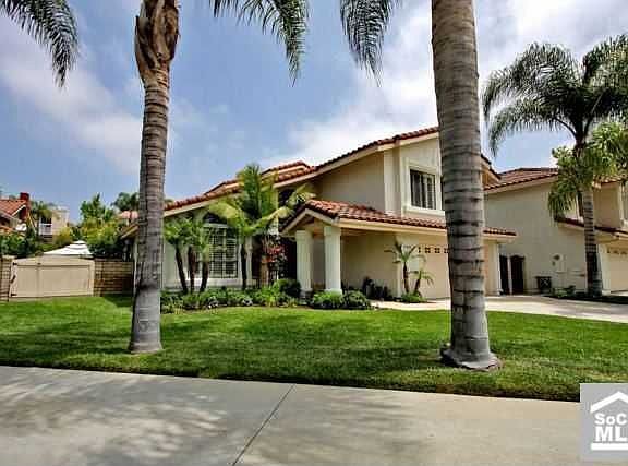 Welcome to California & resort living at its best!!There are no words to describe this incredible 5 bedroom family home with resort living at its fingertips. Long entry way welcomes you to this customized homes thru its double door entry. A step down living room with soaring ceilings welcomes you. The gourmet kitchen is equipped with 6 burner stovetop & brand new stainless built in microwave & oven. The large eating area is ideal for large family meals. The spacious family room has built in fireplace & wetbar. A powder room & laundry room complete that area of the home. A private office is also located on the 1st level.An expanded master w/private sitting area & large balcony begin the 2nd level. The custom bath with travertine oversized shower with 3 separate shower heads & glass bowl sinks complete the master hideaway. 4 additional bedrooms & baths complete the 2nd level. The yard is paradise w/ dramatic rock waterfall slide, huge pool,built in barbeque, & so much more. Walk to park & school. Membership to Lake Mission Viejo included