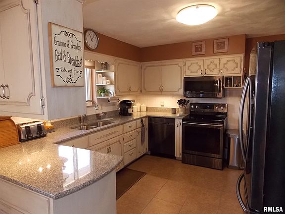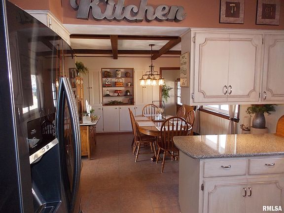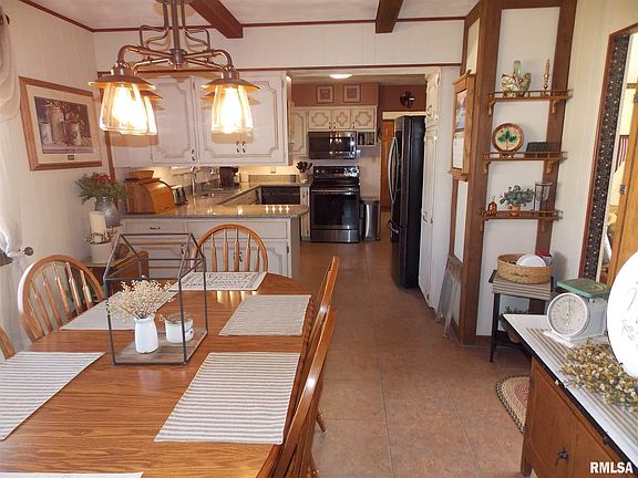 Exceptionally nice brick three bedroom ranch home on a large .57 acre lot offers a countryside view in a small town setting and only 7 miles from Carlyle Lake access area. This home is well maintained with updates including main bath and kitchen with solid surface countertops. The full basement is partially finished with half bath and custom built bar area plus unfinished storage and laundry. In addition to the two car attached garage are 17'x29' and 20'x26' outbuildings with overhead doors and a 18'6" x 40' carport.