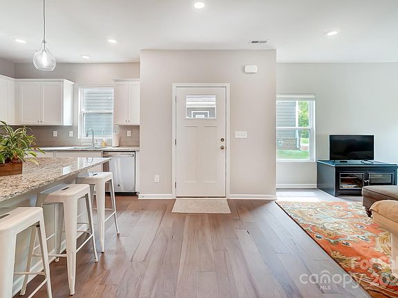 Move-in Ready Townhome – Just in Time for the Holidays! This immaculate 3-bedroom, 2.5-bath end-unit townhome has fresh paint, upgraded lighting, and custom window treatments throughout. The open floor plan features hardwood floors and a chef’s kitchen with granite countertops, stainless steel appliances, and a tile backsplash. Enjoy the spacious kitchen island and dining area that leads to a private patio. Upstairs, the primary bedroom offers a luxurious en suite bath with double vanities and a walk-in closet. Two additional bedrooms are well-sized with plush carpet. Tile floors in all bathrooms and the laundry room add a low-maintenance touch. The townhome includes a 2-car garage, and the HOA covers exterior landscaping. Community amenities include a pool, playground, and walking trails. Located near the Monroe Expressway, this home offers easy access to shopping, dining, and commuting routes. Be in your new home for the holidays—don’t miss out!