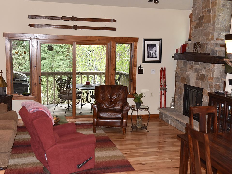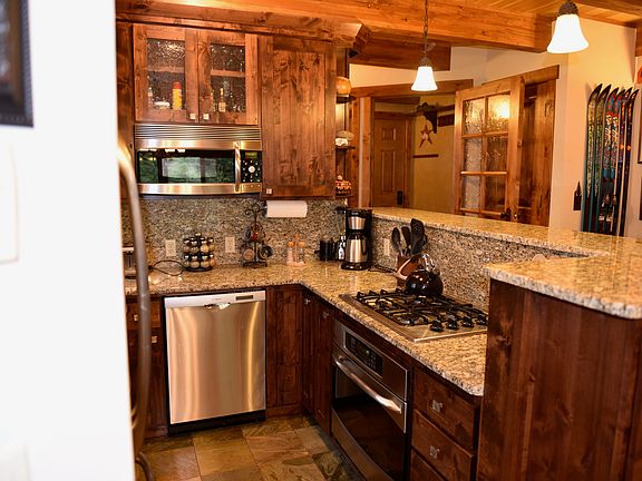 Gorgeous Winterwood Corner Unit! Features granite counters, hickory hardwood floors, stainless steel appliances, vaulted tongue & groove ceilings with exposed beams, quartzite entry and kitchen flooring, solid brass fixtures, dry sauna, stylish knotty alder cabinetry and trim and a covered deck right above the banks of Burgess Creek. Reconfigured to comfortably sleep 7 with a bunk room downstairs and an additional bonus room off the master bedroom. Master bath spoils with built in soft close cabinets, his and hers hammered copper sinks and steam shower. Cozy up in front of the fireplace which finished with dry stacked stone and beautiful driftwood mantel. Only a few short steps from Thunderhead chair lift and Steamboat's world class skiing! Also complimented by full size washer and dryer, On-demand Rinnai R-85 water heater and new tripple-pane Weathershield windows. Sold with mountain rustic furnishings, décor and everything you need for an amazing home in the heart of the Rockies!