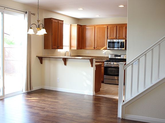 Highly upgraded end unit for rent in Eastlake III @ Summerhill! This 2 story unit shows like a model home. It boasts elegant laminate wood flooring and tile flooring. No carpet here! Gourmet kitchen with granite countertop and high-end stainless appliances. Custom designer paint, ceiling fans, HE washer and dryer, attached 2 car garage. Central A/C and heating. One bedroom downstairs with full bath. Enjoy the serene and very private and spacious backyard perfect for entertaining. Family friendly community