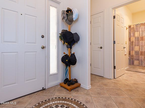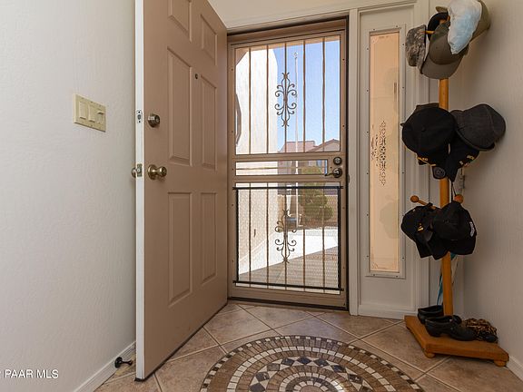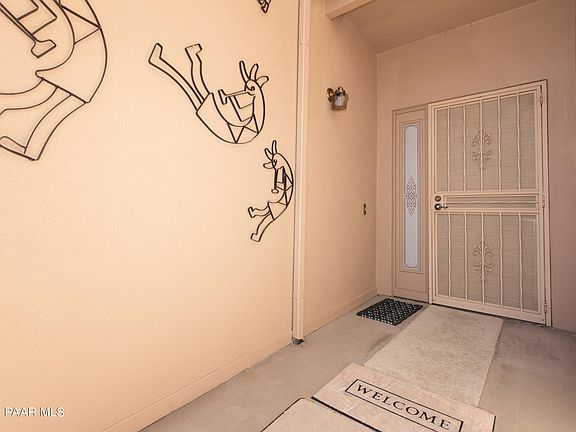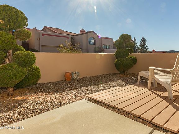 This is the one! Come relax on the deck and enjoy the views of San Francisco Peaks and Granite Mountain. This bright and sunny 1448 sf, single level home with 2 bedrooms, 2 baths, 2 car garage is the perfect lock and leave, vacation home or primary residence and is close to shopping, medical, downtown Prescott, entertainment and restaurants. The home features a welcoming front courtyard, beautiful hardwood floors, large kitchen, 9' ceilings, lovely fireplace in living room, spacious master suite, master bath with dual sinks, jetted tub in main bath, instant hot water, security screen doors, access to deck from master bedroom and dining room, AND for extra storage or workshop there is a 1448 square foot basement with exterior access that has a cement floor with high ceilings.