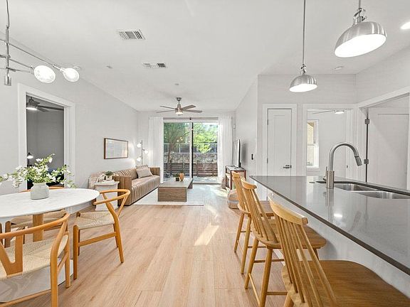 Tucked into the tree-lined community of The Denizen in 78704, Dulce Lane offers the opportunity to own a serene, design-forward residence in the heart of Austin’s most coveted zip code. This 2-bedroom, 2-bath home seamlessly blends modern interiors with smart upgrades and private outdoor living. Inside, fresh paint and new flooring set a warm, inviting tone, while an open-concept layout connects the living, dining, and kitchen areas effortlessly. The generously sized bedrooms include a tranquil primary suite, which provides for a peaceful retreat. Outside, a private yard and covered patio offer space to dine, relax, or entertain under the Texas sky. The attached one-car garage, enhanced storage, and in-unit laundry add to the ease of daily life. What truly sets this home apart is its setting within The Denizen, a thoughtfully designed urban oasis that spans 3.5 acres of open green space and community amenities. From a half-acre vegetable garden irrigated by rainwater collection, to two dog parks, a sparkling pool, an amphitheater, and a community house, this is a neighborhood built for connection and balance. With downtown just minutes away, and access to trails, Zilker Park, and South Lamar’s beloved eateries and shops, this is Austin living at its most inspiring.