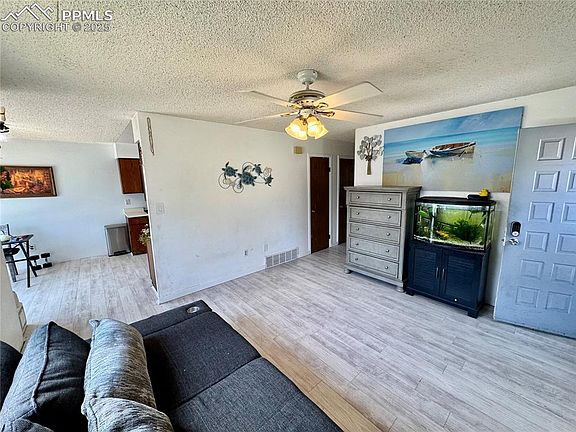 Welcome to this ground level single-level, ranch-style townhome offering convenience, a great location, and potential for personalization. This 2-bedroom, 1-bath residence features low-maintenance vinyl plank flooring throughout most of the home, a cozy wood-burning fireplace, and a kitchen with stainless steel appliances including refrigerator, range/oven, microwave, and dishwasher. The living space opens to a peaceful greenbelt backdrop, perfect for enjoying the outdoors just steps from your back door. Located close to Palmer Park’s acres of hiking and biking trails, as well as nearby restaurants, shopping, hospitals, and more. A covered carport is directly adjacent to the home for easy, weather-protected entry, and additional parking is available nearby. This property is being sold As-Is, providing an excellent opportunity for buyers to update and create their own vision.