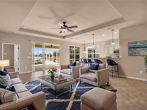 POOL HOME WITH LONG LAKE VIEWS - UNBEATABLE VALUE! This beautiful home, built by Taylor Morrison, sits on a premium lot offering beautiful long lake views in the exclusive, gated community of Sandoval. The open concept floor plan features two bedrooms plus a den, two bathrooms, and an inviting living space designed for modern living. Enjoy the ease of tile flooring throughout, with a den featuring elegant glass French doors and tray ceilings, adding a touch of sophistication. The kitchen is a chef’s dream, equipped with stainless steel appliances, granite countertops, and two pantries for ample storage. A bar counter on the kitchen island is perfect for casual dining or entertaining. The master suite boasts an oversized window, tray ceiling, and two walk-in closets, providing both luxury and practicality. The master bath offers a soaking tub, dual vanities, and a spacious walk-in tile shower. Step outside onto the large lanai to enjoy the sparkling pool and spa, ideal for relaxation or entertaining. Accordion hurricane shutters are installed on the windows, sliders, and front door for peace of mind during storm season. Notable upgrades include a newer water heater, electric panel, and HVAC system (all replaced in 2022), ensuring years of worry-free living. The laundry room is complete with a dog wash station and oversized washer and dryer for added convenience. The two-car garage provides additional storage space. Living in Sandoval means access to world-class amenities, including a resort-style pool with waterslide, a newly constructed clubhouse, exercise room, playground, dog parks, fishing pier, and sports courts for pickleball, tennis, basketball, and bocce ball. Plus, enjoy the vibrant community lifestyle with activities and events for all ages. Just outside the gates, you’ll find a variety of restaurants and shops, so you’re never far from everything Southwest Florida has to offer. With low HOA fees and an unbeatable location and price, this home won’t last long! **THIS PROPERTY QUALIFIES FOR A 1% LENDER INCENTIVE IF USING PREFERRED LENDER. INQUIRE FOR MORE DETAILS.**