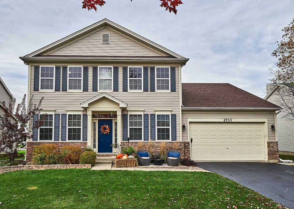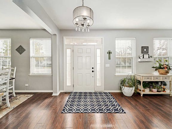 Hurry over to this immaculate, updated and rarely available Wolcott model that boasts a beautifully finished basement. The Wolcott model features 2600 square feet with an open floor plan, 5 bedrooms, and 2.1 baths. 9' ceilings and dark laminate flooring on the first floor. White kitchen features 42" cabinets, updated stainless steel appliances including a double oven and cooktop, a butler's pantry, and a spacious eating area with extra cabinets. The family room is open to the kitchen and features a stone faced wood burning fireplace. Formal living and dining rooms and a 5th bedroom that would serve as a wonderful home office or remote learning space. The 2nd floor features 4 generously sized bedrooms and 2 full baths. The owner's suite features a private ensuite separated by a barn door with his & her walk-in closets and a luxurious soaking tub. The full finished basement offers an abundance of living space including a theater, game room, awesome bar, and a bedroom/den. If you love to entertain, the fully fenced backyard is the perfect spot for summer entertaining with a beautiful patio, a fire pit area and a play set that will remain with this fun home. Upgraded light fixtures, white trim and 6 panel doors, beautiful wall moldings and barn door in the master bedroom, shiplap wall in family room, and barnwood surround at breakfast bar. Oversized 2 car garage allows storage for outdoor items. Easy access to the Millennium Trail and multiple parks including tennis courts and a basketball court.