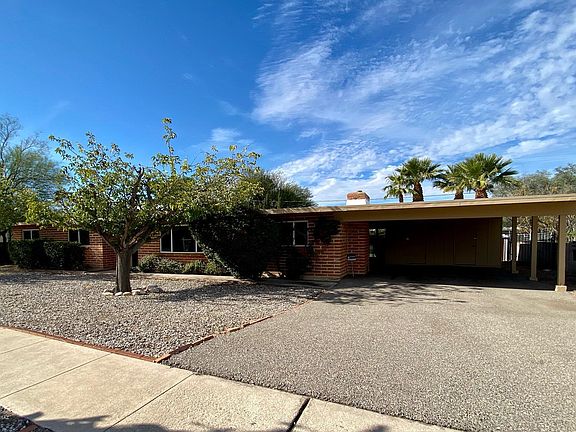 BEAUTIFUL! 4 bedroom 2 full bath home w/ HUGE pool & yard. This home is perfect for entertaining. Kitchen & bathrooms have been completely remodeled. Kitchen has 2 inch thick granite counters, stainless steel appliances, & custom fit cabinetry. Tile floors throughout main living spaces and extra thick padding under carpet in bedrooms. Living room has wood burning fireplace & built in speaker system. Dining has double french doors that open to pool. Laundry located inside. Back yard is perfect for Tucson summers & entertaining. Covered patio runs the length of the home, built in gas BBQ, L shaped pool w/ slide & diving board, turf, pebble tech patio floor, & mature landscaping for privacy. Carport has storage room & extra yard space for a dog run. Play house & kiln do not convey.