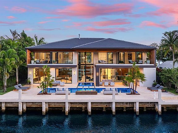 Introducing Coral Ridge’s Most Iconic Design. This hyper-luxurious waterfront estate sets a new standard of elegance, blending organic stone, warm wood tones, and timeless textures with lush landscaping. Fully furnished and move-in ready, the home features an Italian-imported kitchen, glass-encased wine room with self-contained evaporator, soaring 22’ ceilings in the living room with a gas fireplace and dramatic book-matched Sahara Noir marble wall. Disappearing sliders create seamless indoor/outdoor living, opening to resort-style spaces. Offered turnkey with all furniture, art, rugs, bedding, towels, televisions, and security cameras included.