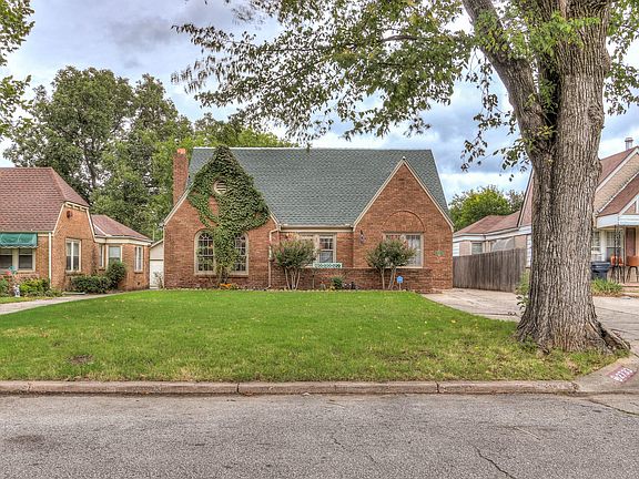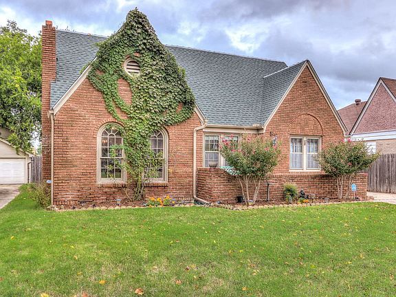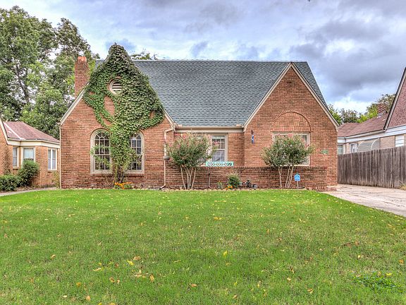 ***MOVE IN READY - UPDATED HISTORIC COTTAGE ON THE MAIN BOULEVARD IN HIGHLY SOUGHT AFTER CRESTWOOD ADDITION*** Only a scooter ride away from the plaza! Call 405-370-8262 for more information** Charming, updated 1930s Tudor in Cleveland School District. Minutes from Uptown, Plaza District, Midtown, Downtown and more! Two-car detached garage, Large front porch, Large indoor utility room with washer/dryer & water heater, two bedrooms, one bathroom, large dining room, large living room with vaulted ceilings and gorgeous working gas fireplace, breakfast room and completely updated kitchen with brand new patterned tile floors. Designer paint throughout. All appliances can stay. Brand new farm sink, Samsung refrigerator, Samsung gas stove and a wine fridge. Attic has an additional 750 sq ft. that buyer could finish out and make a master retreat and have instant equity. Backyard has a deck and a 12x16 finished out Tuff Shed she-shed with French doors, casement windows and electricity. Two car detached garage. The home has many architectural period features.