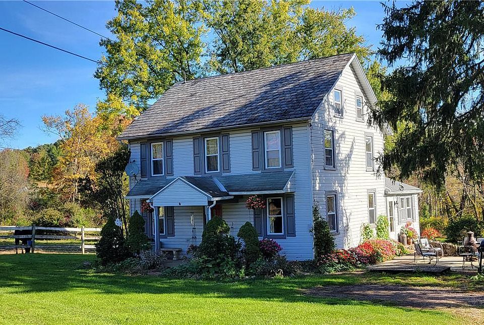 Unique opportunity to own your own Private Horse Farm in Springfield Twp. Updated 3BR Traditional Farmhouse on 4.4 ac w/appx 1.5 ac of electrified fenced pasture w/12x20 run-in shed, 48x16-4 stall barn w/water hydrant & elec in front of 60x120 outdoor riding ring. Along w/a det 20x20 Gar for all your equipment. Long driveway leads to beautiful farmhouse set far back from the road w/6 parking spots. Home has many recent updates including luxury vinyl plank flooring in many 1st fl rms, newer windows throughout, & fresh paint. Enter mudroom from hardscaped patio where you can change out of your mucks. Then step up to a well appointed Kit w/5 burner Gas stove, Built in Micro, Dishwasher & Stainless Dbl door Ref. Laundry rm & half bath to one side, to the other, Dining rm & Living rm w/lg opening between affording you line of sight from front to back of home. Beautiful stained glass window between Mud rm & Dining rm, & a Study on the 1st fl which could be used as a 4th Bedroom. Many windows allow natural light to spill throughout. Upstairs you'll find 3 generous sized bedrooms with original hardwood flooring, and an updated Full bath. There is a walk-up attic off 1 bedroom for plenty of storage. There's also a full, unfinished basement off the Kit which houses utilities & gives you space for a workshop. An at grade backdoor out of basement leads to det gar. Must see Country property, short drive to town for shopping, & easy access to Rt 309, I-78, and PA turnpike for easy commute.
