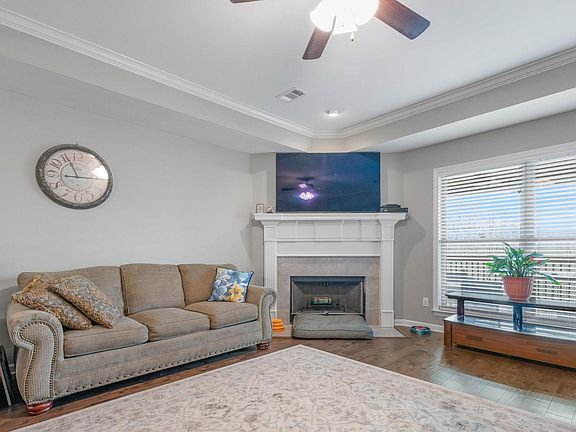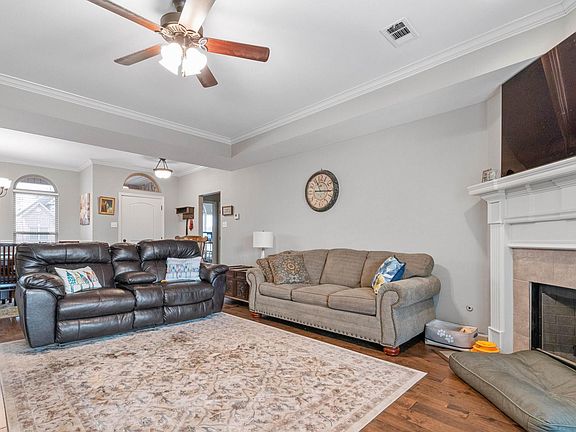 Well maintained brick/stone 4 bedroom, 3 bath home that backs up to a tree line. Living room/dining room area with tray ceiling, gas fireplace, and hardwood flooring. Kitchen has granite countertops, backsplash, tile flooring, pantry, stainless steel appliances and includes a kitchenette and breakfast bar. Master bedroom has a walk-in closet, double sinks, separate shower and a garden tub with jets. Two of the 4 bedrooms share a Jack-n-Jill bath with double sinks and shower/tub combo. Partially covered deck overlooks a fully fenced back yard with a beautiful view of the trees. Home features a 3-car garage (with 220V outlet), gutters, blinds and extra landscaping. Schedule your showing today!