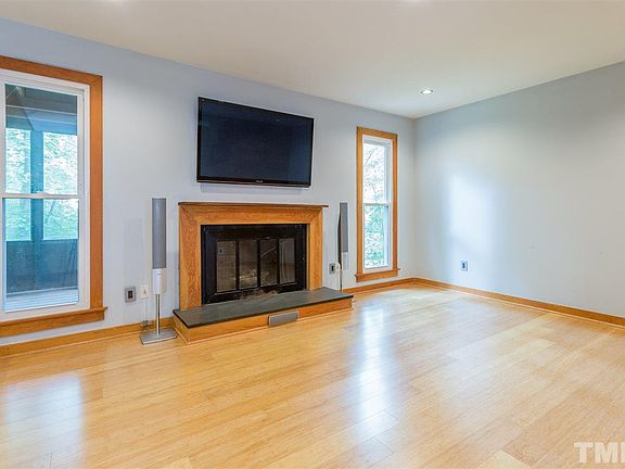MOVE IN READY! Completely renovated kitchen features marble ctrtps, ceramic tile floors, gas stovetop, subway tile backsplash, & flows into open DIN RM. Bamboo floors in all bdrms & living areas. Designer light fixtures thru-out. Up-fitted bathrooms! Dbl screen porches. Huge deck overlooking serene, secluded fenced in backyard & pond. 2015 new roof & tankless water heater. 2012 new windows! Custom millwork throughout. Just outside of the belt line and conveniently located near Umstead Park & Downtown!