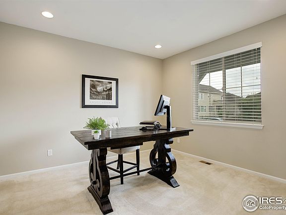 Entertainers dream...from the inside flr plan to the outdoor custom covered multiple level deck. 3BD/3BA open floor plan is perfect for gathering w/family & friends. Enjoy the lge KT island, granite counters & SS appliances while your guest enjoy the vaulted great room w/gas frplc. Convenient office/flex room on main flr. Spacious primary suite & luxury bath w/walk-in closet upstairs along w/laundry rm upstairs.. Covered deck w/pine ceiling, recessed lighting & yard is fully fenced w/sprinklers. Unfin. bsmt perfect for workout space and is waiting for your design vision. Lakes at Centerra offers a Community clubhouse, pool, and play area. Convenient to shopping restaurants and I-25.