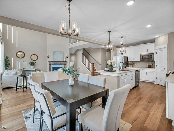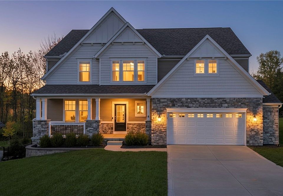 Welcome to your dream home in the picturesque Windfall Estates community, known for its serene environment and top-tier Highland School District. This stunning residence blends style, comfort, and functionality. As you enter, the impressive two-story great room greets you with a cozy fireplace and a wall of windows, framing breathtaking sunset views. The open layout seamlessly connects the dining area to the designer kitchen, featuring elegant white cabinetry, quartz countertops, and an oversized island. A spacious bonus room enhances your living experience, offering versatility for relaxation or entertainment. The main floor includes a flexible office or bonus room, a half bath, and a well-organized mudroom leading to the garage with extra storage. Upstairs, the serene owner's suite features a generous walk-in closet and a luxurious spa-inspired bath with dual vanities and a tiled walk-in shower. Three additional bedrooms with walk-in closets share a full bath, while the nearby laundry room adds practicality. The professionally finished walk-out basement expands your living space with a lounge area and a full bathroom, complete with a soaking tub. Sliding glass doors open to your private backyard oasis, where outdoor living thrives on the Trex deck and stamped concrete patio—perfect for gatherings or quiet evenings. Surrounded by lush landscaping and a fully fenced backyard for privacy, nearby parks offer ample outdoor recreation with walking trails and playgrounds. Windfall Estates promotes a vibrant community spirit, with easy access to shopping, dining, and wellness amenities. Don’t miss your chance to own this exquisite, move-in-ready home and embrace a lifestyle of comfort and convenience! A one-year home warranty is offered for a piece of mind. Call today for a private tour.