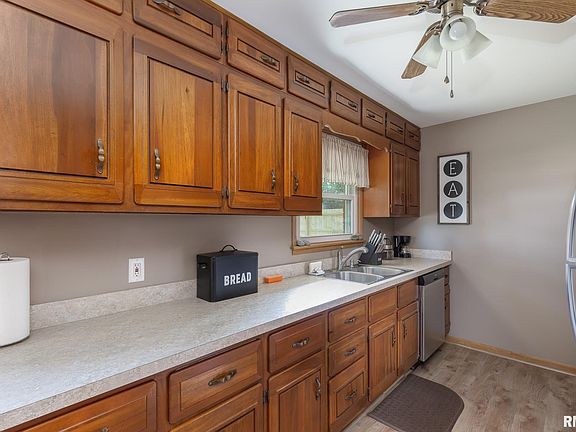 Come and see this gorgeous, move-in ready, 3 bedroom, 2 full bath, brick ranch home in a well established Northwest Davenport neighborhood! Upon entering you see an inviting large living room with a lovely stone gas fireplace and wood laminate flooring that extends throughout the dining area, hall and kitchen. Kitchen features newer stainless steel appliances (2019), and a brand new dishwasher in 2021. Bedrooms have original hardwood flooring, large closets/storage space, and a private entrance to the bathroom from the master. Plenty of room in the spacious basement rec room that is finished, and features a wood burning fireplace with a gorgeous wood mantle. Basement is fully waterproofed! Recent updates include roof, water heater, flooring, countertops, sinks & fixtures in 2019, and updated ceiling fans, landscaping, front doorstep railing, and paint in 2020. The large fenced in backyard is perfect for pets, nice patio for grilling and chilling, plus an attached 2 car garage!