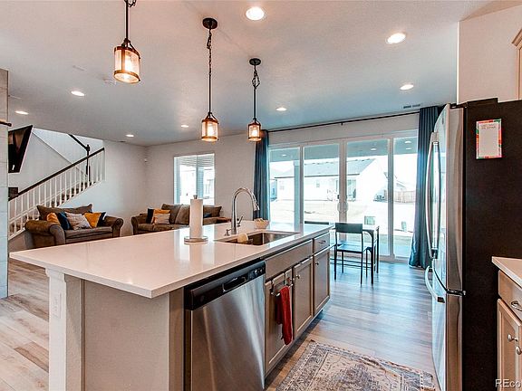 CALLING ALL VA BUYERS!! 29 YEAR FULLY ASSUMABLE VA LOAN LOCKED AT 2.25% INTEREST RATE!! CONTACT LISTING AGENT FOR MORE DETAILS. WELCOME TO SKY RANCH!! HIGHLY SOUGHT AFTER LOCATION. CUL-DE-SAC HOME WITH VIEWS OF THE MOUNTAINS AND EASY ACCESS TO OPEN SPACE AND TRAILS. YOU WILL BE AMAZED WITH THE OPEN LAYOUT THIS HOUSE HAS TO OFFER. ON THE MAIN LEVEL YOU WILL FIND THE OVERSIZED GREAT ROOM, DINING AREA, AND THE UPGRADED KITCHEN FEATURING QUARTZ COUNTERTOPS, UPGRADED CABINETS, AND STAINLESS STEEL APPLIANCES. THE MAIN LEVEL ALSO FEATURES A FOYER AREA AND 1/2 POWDER BATHROOM. ON THE UPPER LEVEL YOU WILL FIND THE PRIMARY BEDROOM WITH EN-SUITE 3/4 BATHROOM, 2 ADDITIONAL GUEST BEDROOMS, FULL GUEST BATHROOM, LARGE OPEN AIR LOFT AND THE LAUNDRY ROOM. VENTURING TO THE BACKYARD YOU WILL SEE IT IS PERFECT FOR ENTERTAINING GUESTS ON THE EAST FACING COVERED PATIO THAT OVERLOOKS THE FULLY LANDSCAPED BACKYARD. THE 2 CAR GARAGE IS FULLY FINISHED WITH PLENTY OF STORAGE SPACE. THE FRONT PORCH IS COVERED, AND HAS GREAT VIEWS TO THE WEST. THIS HOME FEATURES LAMINATE WOOD FLOORING, UPGRADED CARPET, UPGRADED LIGHTING FIXTURES, SMART HOME FEATURES, UPGRADED CABINETS, QUARTZ COUNTERTOPS, UPGRADED KITCHEN, AND THE LIST GOES ON AND ON!! BARELY LIVED IN- JUST 1 YEAR OLD. AMAZING HOA AMENITIES INCLUDING WALKING TRAILS, PARK, AND PLAYGROUND. TRULY MOVE-IN READY. UNBEATABLE LOCATION WITH EASY ACCESS TO I-70, AURORA, DENVER, BUCKLEY AIR FORCE BASE, DIA AND COLORADO AIR AND SPACE PORT. DON'T MISS OUT!!