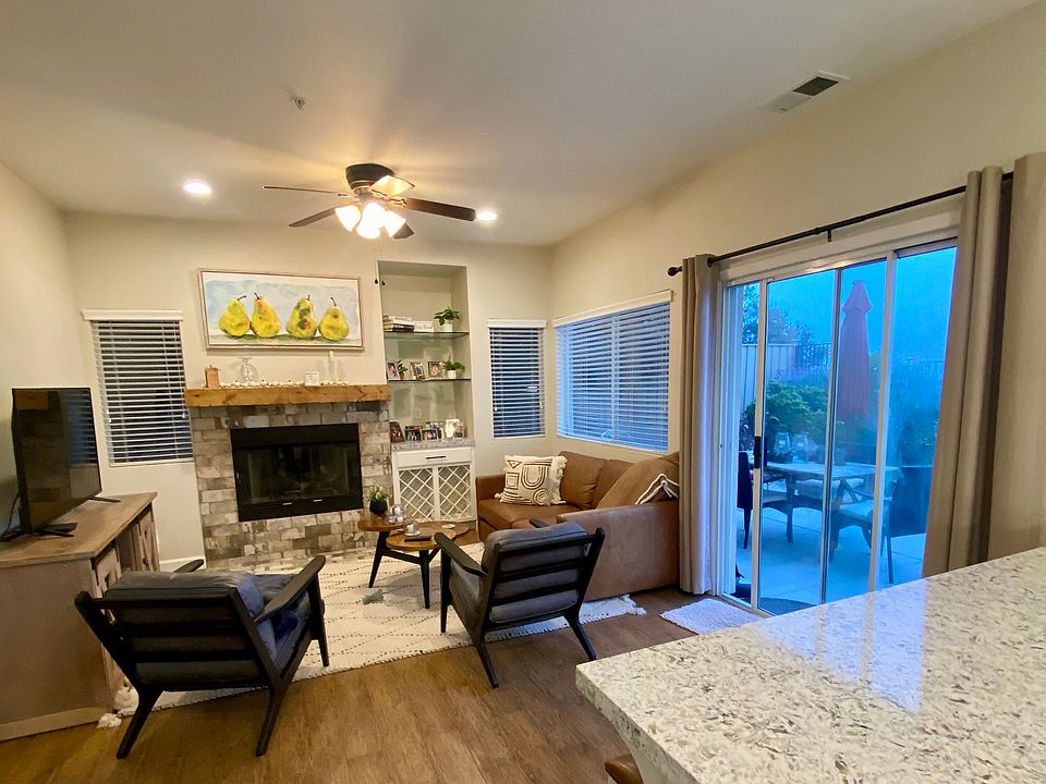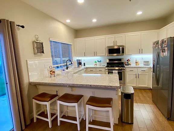 Prepare to be impressed, pristinely maintained and updated throughout! 4 beds/2.5 baths, situated in the highly desired, gated community of Las Palmas, located off River Rd. Close to schools, parks, and nearby walking trails. This home welcomes you into an open and light-filled floor plan, wide planked "wood look" tile floors. A crisp white kitchen with warm colored hardware, stainless gas range, quartz countertops, and a picturesque canyon view from your kitchen sink. The family room/ kitchen area features a cozy fireplace. There are 4 bedrooms upstairs, one could also function as a playroom or home office, oh the possibilities! Primary bedroom has brand new carpet, 2 walk in closets with built ins, and a generously sized "spa feel" bathroom with oversized tub and separate stall shower, Additional features are a 2 car garage, inside laundry, and a fenced and well manicured backyard with views that look out on the open space behind you. Such a serene setting. Move in ready! Owner pays water, trash/sewage, landscaping and housekeeping 1x/mo. Tenants pay gas and electricity. No pets allowed.