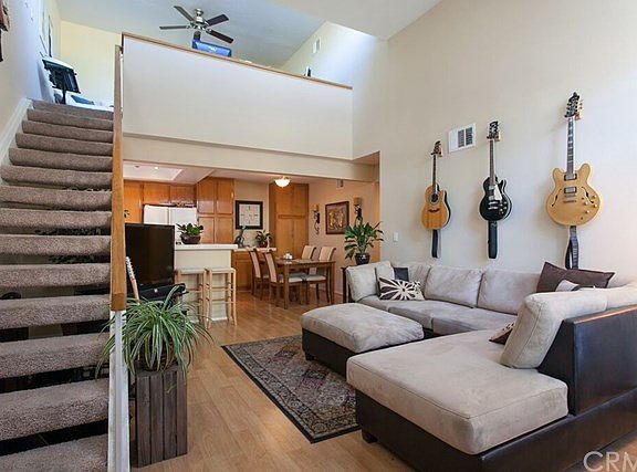 This is a beautiful and spacious 1 bedroom PLUS large loft condo in a great neighborhood. Includes a 1 car garage. High ceilings, laminate flooring in living areas, carpet in the bedroom and loft. Lots of cabinet space in the kitchen and recessed lighting. The balcony overlooks a rich greenbelt. HOA includes a pool, spa BBQ, tennis courts and much more. This immaculate home is located in a gated community. Conveniently located near major shopping centers, schools, and restaurants. A must see!