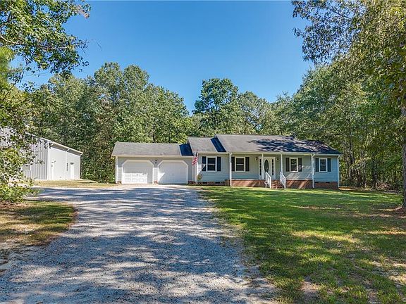 Welcome to this spacious and private country rancher, a car/workshop lover's dream! The owner installed a 40X60 shop in 2012 with insulated walls and a carport in 2006 in addition to the two car attached garage. This home provides easy one floor living, with 3 spacious bedrooms and 2 full baths with upgraded vanities, and the entire home has been freshly painted. The eat-in kitchen has newer appliances, and flows right into the great room with French doors overlooking the back deck and pool. The decking has recently been maintained and retained. An outdoor shower was added in 2022. A wonderful opportunity for someone looking for privacy, nestled on a quiet lot with over 5 acres, yet still just a quick 10 minute drive to hop on I-85 or I-95. Appraised in 2017 for $233,000. Other notable upgrades include: 2009 water softener/filtration system, 2012 well pump, and 2013 water heater. New roof and patio in 2023. This home is not to be missed!