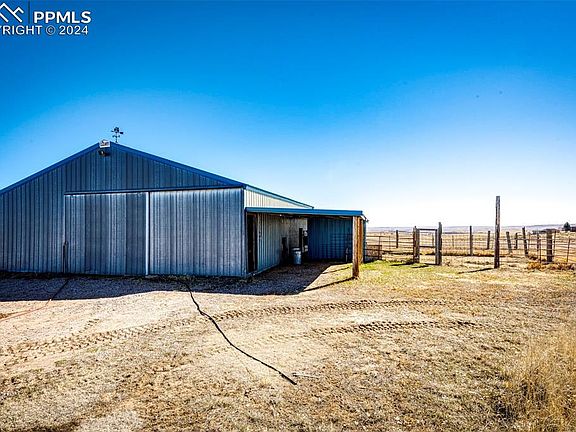 Nestled on the southern rim of the Bijou Basin, this property has it all for the expanding family! Forty fenced acres, a large livestock barn and a well built dream shop with a concrete floor, electricity, and heat! The large four bedroom, three bath home has two more basement rooms that could be non conforming bedrooms, office space, home school space or work out rooms. This property is only 10 minutes to Calhan, 25 minutes to Falcon, and 40 minutes to Colorado Springs. The livestock barn is appx 48x48'. The shop is appx 2500 square feet.