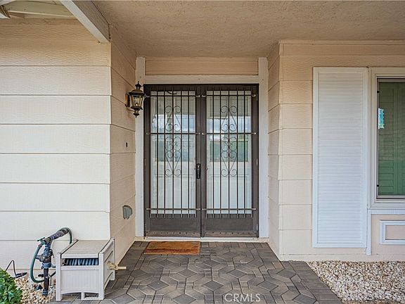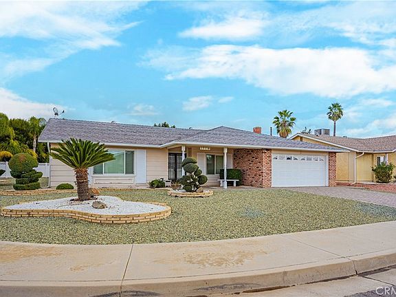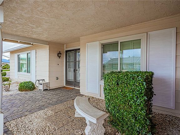 Highly sought Menifee Single Level Home in a beautiful 55+ Community. Featuring a spacious low maintenance corner lot with 2 Bedrooms, 2 Bathrooms plus Office/Den or possible 3rd Bedroom. Formal Living & Dining area. Family room with a fireplace open to the Kitchen. Primary Bedroom with Double Closets. Enclosed Bonus/Patio Room. Newer A/C and Heating, Upgraded Windows, Ceiling Fans, Shutters, lots of storage and more. Large, Park like Backyard including fruit trees is perfect for entertaining. Attached 2 Car Garage with direct access to the house. Low Taxes and Low HOA conveniently located to the 215 Fwy, Shopping and Restaurants.