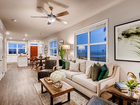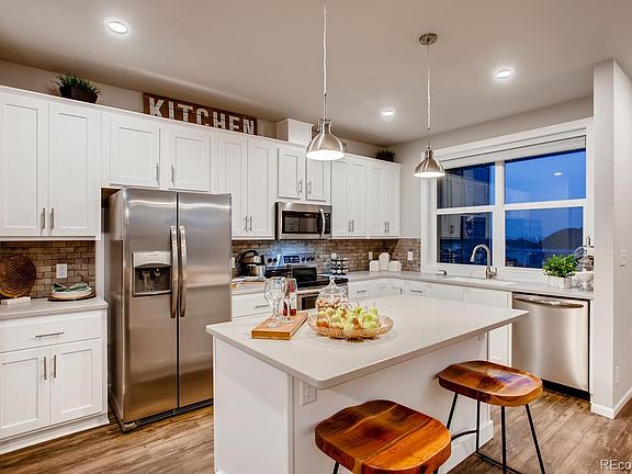 This three bed, 2.5 bath paired home provides an open concept living space on the main level. The kitchen provides a large island with room for seating and food prep, as well as ample cabinet space. A powder room is conveniently located on the main level for guests. The patio is located in the back providing a private outdoor space. Upstairs are three bedrooms, one with an en suite bathroom. The laundry is at the end of the hallway with room for a stackable unit. A one car garage gives more storage space, and there is a concrete parking space next to the alley loaded garage. The home will face an open space village green, with oversized windows that fill this home with natural light! Photos and virtual tour are examples of the floor plan only and may showcase options that are not selected in this particular property.