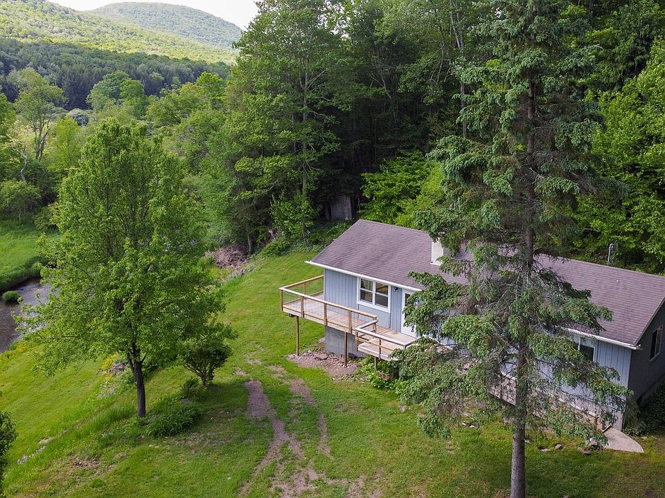 When the original owner built this house, he picked a view that made him happy. He built it with 3 bedrooms, so his wife and kids would be happy. He built it with a deck, so he and his wife could watch the sunrise in the morning, because that made him happy. He built a shed too, where he could tinker and play, while his kids tinkered and played by the creek, because that made him and his kids happy. Over the years they would fish in the creek, ski at nearby Plattekill and Belleayre ski mountains, hike in the hills, cookout on the deck, plant flowers, watch eagles soar, see deer in the meadow, hear owls in the dark, catch fireflies, find constellations in the night sky, build snow forts, race go-karts, build campfires, and create a million memories that made them happy. But today, there's a whole new world of happy going on in Margaretville. Today, happy is access to high speed internet to host movie night creek side. Happy is filling your basket with fresh fruits, veggies and meats from the Pakatakan Farmer's Market for a fabulous feast with friends on the deck. Happy is riding the recently installed gondola at Belleayre Ski Resort or ripping down the newly upgraded snow tube lanes at Plattekill Ski Mountain. Happy is grabbing a dirty chai latte from Cafe Marguerite on the way to the Cauliflower Festival. Happy is fine country dining at Table on Ten, Brushland, The Fierce Grizzly, or Trattoria Locale. Today's happy is about balancing some of your amenities you left back in the city with the serenity of living in the Catskills. Because that's what having a home here is all about. Slowing it down in nature and living in the moments that make you... happy. 2734 Denver Vega Road sits on 3+ acres. - 3 bedrooms and 1 bathroom. - An open kitchen floor plan - wood burning stove - wrap around wood deck - natural spring feed creek