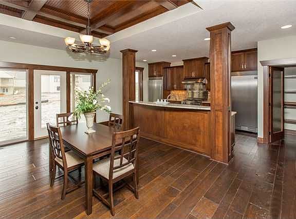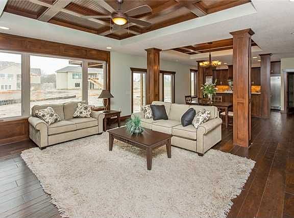 Perfect location in a Clive neighborhood known as Berkshire Woods, backing to trees and situated on a quiet cul-de-sac street. Entering from the front porch into the foyer, you'll find a beautifully designed open staircase leading to the finished lower level. The main level offers an expansive open design. Great room w/ beam ceiling & the gorgeous wood columns that frame the dining area with a beamed 10' ceiling, open to the spacious kitchen complete w/ large walk-in pantry, full size commercial refrigerator & freezer, commercial gas range w/ hood, dishwasher, & microwave. 3 BRs on the main level, each w/ private bath access. Hardwood floors run through the main living areas as well as the master suite. The covered deck makes a great outdoor living area. The finished lower level features home theater room complete w/theater system, a games room w/ custom wet bar, 2 BRs & 2 more baths. Lots of storage as well in the unfinished area. Oversized 3 car garage.