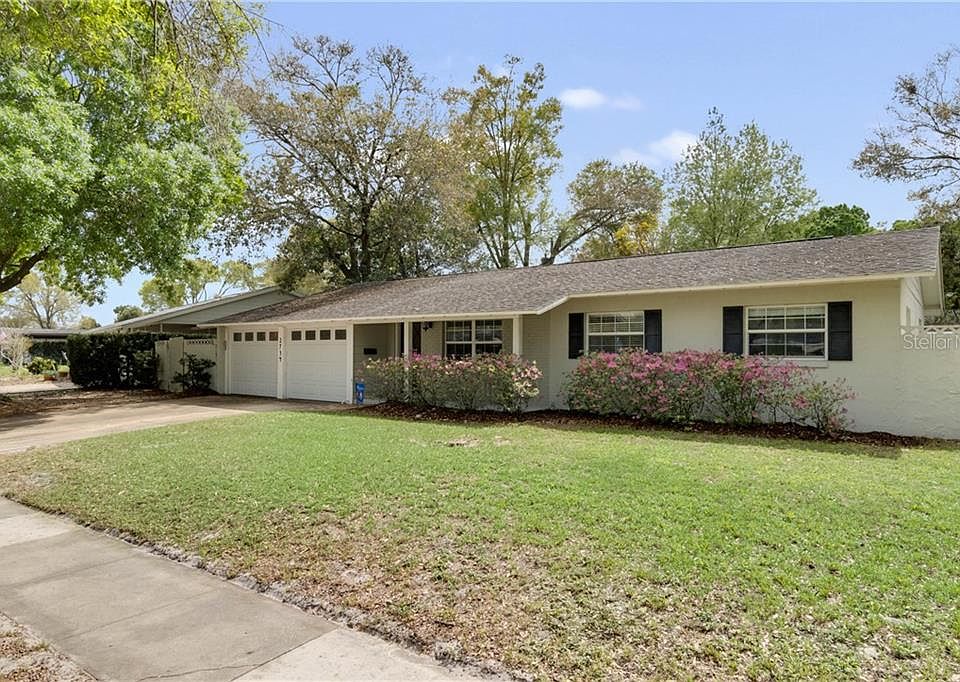 MULTIPLE OFFERS, PLEASE SUBMIT BEST OFFER BY 4pm EST SUNDAY 3/7/2021. Welcome to the Winter Park Pines, with tree-lined streets and a mailman that delivers to your door! This three bedroom, two bathroom home will not disappoint! Enjoy your morning cup of coffee or your evening glass of wine on your quaint front porch area. Walk into your beautiful living space with tile flooring, large windows and plenty of natural light. The dining room is open to the kitchen and features beautiful laminate flooring and a pair of gorgeous FRENCH DOORS that lead to the back yard. The kitchen is updated with granite countertops, stainless steel appliances, lovely wood cabinets and even a pull out spice cabinet. The LARGE INTERIOR laundry room has more than enough space for your washer and dryer, sink and cabinet AND extra pantry storage. This home has a built in home office that has been custom built in half of one of the two car garages. This space also has a newly installed attic access with decking. Use as a home office, playroom, or even easily convert back if you desire that second parking space. Back through the dining room and out the french doors you will find a beautiful LARGE covered porch with ample space for a large patio set.The huge FENCED-IN back yard has plenty of space for activities as well as a shed for extra storage. On the other side of the living room area you will find all three bedrooms. Down the hall there is the COMPLETELY REDONE hall bathroom complete with linen closet, large vanity and bathtub. There is also an additional hall closet for even more storage and the master bedroom is on the left. This room fits a king sized bedroom set nicely and the master bathroom has a nice stand up shower. Across the hall you will find bedroom number two and three. Both are great sized rooms and offer tons of natural light and closet space. You won't want to miss the opportunity to see this beautiful Winter Park home! It's zoned for top-rated schools in Winter Park, including Glenridge Middle and Winter Park High, plus it's minutes away from the Center for Health and Well Being and Crosby Center, WP Advent Health Hospital, the Cady Way Trail & Pool, Ward Park, Winter Pines Golf Course, plus so much more! AC: 2018 Roof: 2005 Electrical: Updated Plumbing: Updated