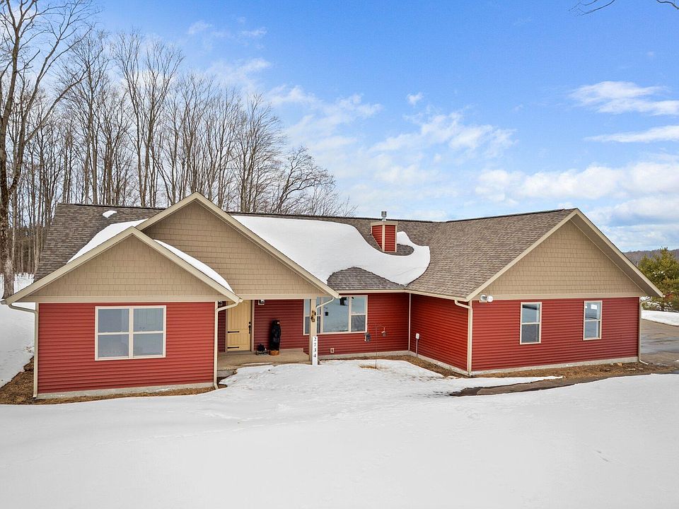 A quintessential 3 bedroom 3 bath home located between Gaylord and Boyne defining modern luxury living in Northern Michigan. Entirely custom built. The gourmet kitchen with granite, offers spectacular cabinetry, high end appliances, and formal dining. The primary bedroom suite, thoughtfully designed with a generous walk-in closet, a custom primary bath suite, fireplace and room for a personal sitting area. Split floor plan for privacy with 2 guest rooms, bath, and an additional family room. Private back yard with covered patio for entertaining. As functional as it is beautiful, this newly built home is located on over 3 acres with a detached, matching 30x48 garage!