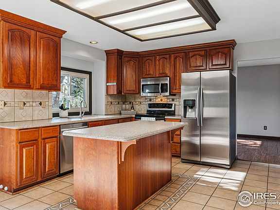 Free rate buy down available through Seller's Preferred Lender! Welcome to this beautiful two-story home in the desirable Ranch Country Club neighborhood. A charming front porch and custom front door invite you inside, where you'll discover a thoughtfully designed layout and numerous upgrades. The main floor features a private study with a bay window, built-in bookshelves, French doors, and decorative ceiling tiles-perfect for a home office or reading nook. The large living room flows seamlessly into the dining room, complete with a bay window that fills the space with natural light. The updated kitchen boasts cherry cabinets, island, pantry, tile backsplash, and a generous eating area. Adjacent to the kitchen is a cozy family room with vaulted ceilings and a stunning full-brick fireplace with a hearth bench. Off the kitchen is a large custom trek deck and a 3-year-old swim spa for ultimate relaxation. Upstairs, you'll find three sizable secondary bedrooms and a full bathroom, along with a spacious primary suite featuring vaulted ceilings, an updated bath, and a walk-in closet. The finished daylight basement offers additional living space with a nonconforming fifth bedroom (no window), a full bathroom, a recreation room, and ample storage. This home also includes newer windows, brand-new furnace, updated exterior paint, and fresh interior paint. The Ranch neighborhood is known for its vibrant community and picturesque setting with ponds, lakes, mountain views, and open spaces. Residents can enjoy access to the Ranch Country Club through private membership, offering a golf course, swimming, dining, pickleball, and tennis facilities. Don't miss the chance to make this exceptional home yours-schedule your showing today!
