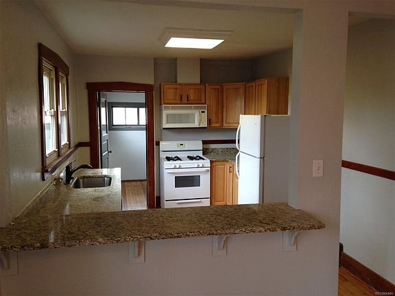 Nicely updated bungalow with 2nd floor master suite! Great location close to downtown and walking distance to restaurants and parks! Beautifully refinished hardwood floors. Refinished woodwork throughout the home. Updated kitchen with new slab granite counters and hickory cabinets! Updated vanities in both baths. New oil rubbed bronze light fixtures. New exterior paint! New interior paint! 2nd floor is the master suite with large closets and a nicely appointed bath with an oversized shower. Mud room off back entrance is a great place to put all your shoes and coats. Full, unfinished basement provides unlimited potential for you to create your own additional living spaces. Covered front porch to enjoy those wonderful Colorado summer evenings. Cozy, private backyard with brick pavers and a chicken coop! 1 car detached garage! Newer furnace and new water heater!