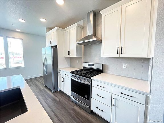 MOVE-IN READY in Northwest Denver, live in Westminster Station at Pomponio Terrace. Within walking distance to the B-Line light rail, offering easy access to LoHi, West Highland, Berkeley and Sloan Lake neighborhoods. This community very close to the Little Dry Creek Trail, connecting to the entire metro greenbelt system of bike and walking paths and the nearby Westminster Station light rail. Lock and leave for your fun-filled mountain weekend or stay local and enjoy the lively Northwest Denver restaurant scene, downtown Denver's sports & entertainment scene, and Bruz Beers an artisanal brewery located close by in the Midtown neighborhood! The tastefully designed Preston plan offers an open concept, modern finishes throughout, 9' ceilings, and an abundance of natural light with its thoughtful window placements. Design Selections Include: WPC Hardwood on entire main level, Quartz Countertops, gorgeous White Cabinets, Whirlpool Stainless Steel Appliances with Canopy Hood and Gas Range, as well as upgraded Matte Black Cabinet, Plumbing, Lighting and Door Hardware. The upstairs features a spacious Primary Suite with vaulted ceilings, walk-in closet, and luxurious bath with a Semi-Frameless Shower Enclosure and double sinks. Secondary bedroom, a full bath, and laundry are located upstairs too, making this an exceptionally convenient plan. Enjoy the ease of parking in your home's large 2-car attached garage. Additional highlights include custom lighting, central a/c, tankless water heater, & 2nd story balcony perfect for a grill, bistro table & chair. Photos are of a Model and Not the Actual Property. HOA's snow removal includes sidewalks adjacent to streets and alleys. Taxes shown are county's Estimated 2023 amount. Some of the community amenities and included features are provided through the metro district and some through the HOA.