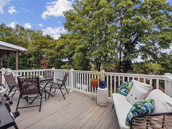 Super cute starter with new metal roof, gutters & downspouts just installed.  Amazing trex like deck done in 2020 which overlooks the park like backyard! Location, location, location...15 min to South Hills Village, 1.5 mile to Liberty Tunnel, 10 min to Downtown or Strip District. 5 min walk to Potomac Ave, 7 min walk to the "T." Relax on the deep covered front porch on this quiet street or be indulged in the spacious Master Bedroom adjacent to the main bathroom on the upper level with beautiful porcelain tub.  Do nothing but move in because this place is super cute and updated nicely with white farm style kitchen & newer appliances. Dining Room is huge. Perfect for enjoying time with friends and family. Firepit in the yard will be your favorite spot for fall evenings with your special someone.  Basement is usable for storage and is where the laundry hookups are located. Basement walks out to the area under the deck and to yard. This is it!!