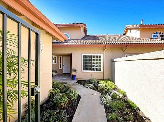 This Mesa Vista Main Floor Master Home Has Been Highly Upgraded and is in Impeccable Condition. The Community is Situated Near the San Juan Hills Golf Course and has Amazing Sunset Views. This Three Bedroom Home Features an Open Floor Plan and Over 1750sq. ft. of Living Space. High Ceilings and an Abundant Use of Windows Provides Natural Sunlight. Oversized Living/Great Room with a Cozy Fireplace, Dining Room, Kitchen w/ Breakfast Nook Overlooking Front Courtyard, Master Suite & Bathroom w/ Skylight, Guest Bedroom(Currently an Office) and Secondary Bath all Provide Main Floor Living. Third Bedroom is Upstairs with a Private Bathroom. Additionally, Upstairs Features a Walk In Storage Closet. Other Highlights to the Home Include, Pex Piping, Luxury Vinyl Plank Hardwood Flooring, New Windows and Sliders Thru-Out, Upgraded Kitchen w/ Quartz Counters, Farm Sink and Stainless Appliances, Remodeled Main Floor Bathrooms, New Furnace& A/C Unit, Wood Blinds, New Baseboards on Main Level, & Custom Built in Storage Cabinets in Your Oversized Two Car Garage. Spend Your Leisurely Moments Relaxing in Your Gated Front Courtyard or Your Private Back Patio. The Neighborhood Offers Pools & Spas, Walking Paths and a R/V Parking Through Association. Peaceful Living with Community Views of the Sunsets, Hills, and City Lights! Welcome Home!