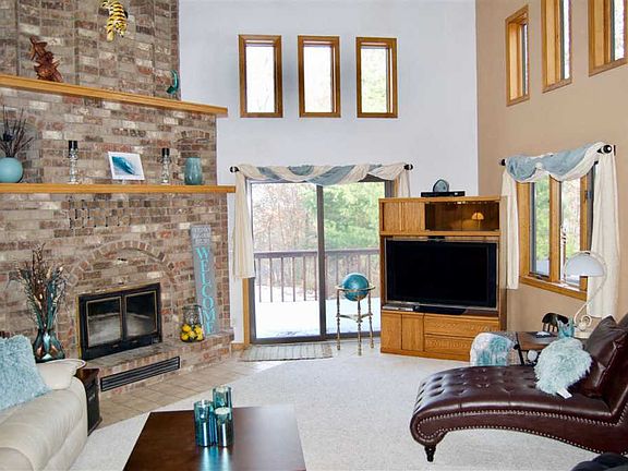 This classy home is nestled among woods just a 4-minute drive to Richland Center. Features include a hot tub on the deck. Clean & elegant kitchen with granite counters, double ovens, gas stove top, & wine fridge. The grand entrance offers a stunning view of a sunken living room with cathedral ceilings, floor to ceiling wood burning fireplace, large window and skylights creating a beautiful view of the outdoors. **This property includes 2 acres of land with the house for $419,000. Buyers may make offers for property adding a minimum of 10 acres to stay in compliance with the The Wisconsin Managed Forest Law Program (âMFLâ).