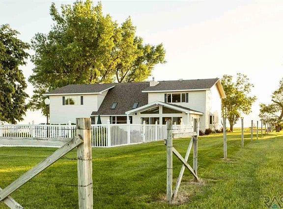 6.5 Acres only 12 minutes from SF! This unique & immaculate acreage is located just west of Tea. The home has plenty of room to roam with over 4200 sq ft. Open floor plan gives the feeling of spaciousness. The kitchen/dining features a large center island, granite counter tops, & plenty of space for a large dining table. Walk through the living room & into a 4 seasons room overlooking the outdoor in ground pool with diving board & patio area. Natural light pours thru the skylights as you relax in the family room by the fireplace during the colder months. The upper level features 4 HUGE bedrooms. The master suite has been completely redone with whirlpool tub, double sinks & tiled shower. In addition to the 3 stall garage, there is a 50X70X20 pole shed, a 10X28 lean to for the horses & a 26X36 shed. Grab your fishing poles as this property has a stocked fishing hole. Shoot guns on the range and ice skate in the winter - the options are limitless and the memories are waiting to be made.