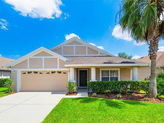 MOVE IN READY! Located in highly sought after community of Seven Oaks! Plenty of room with 2,070 sq ft of luxurious living space, the perfect place to call your home! Home features 4 bedrooms, 2 full baths, 2 car garage on a beautiful water conservation lot! Fantastic 1 story open floor plan. Large open kitchen, beautiful cabinets, appliances, breakfast bar with plenty of eat in space also a large pantry. Kitchen opens up to large family room which is great for entertaining. Enjoy the peace & tranquility of your back yard with gorgeous water views, covered lanai & upgraded landscaping! Beautiful tile & brand new carpet flooring throughout! Large master. Master bath with large walk in closet, His & hers own vanity area, garden tub & large walk in shower. This home is a must see & wont last! Community amenities include, clubhouse & water park, slide, kiddie splash park, junior Olympic lap pool, multi-tiered theater, cafe, fitness center, soccer field, basketball court, 5 lighted Har Tru tennis courts, walking trails & playgrounds. Close to all I-75/275, Outlet Mall, restaurants. CALL TODAY FOR A PRIVATE TOUR!