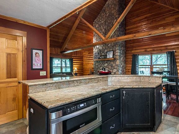 Very charming 3 bedroom log home secluded in natures best. Lots of wildlife to enjoy from the gorgeous wooded view! 3 season rm. Deck and patio. Updated kitchen with granite, dark cabinets, tile, and Asian hand-scraped floors. Finished walk out basement with large rec room and wet bar. This home has over 2,500 total finished sq ft. Spring Brook Golf Course just a cart ride away. This is a gorgeous must see home. Subject to seller finding a new home of choice. 24 hours to show preferred.